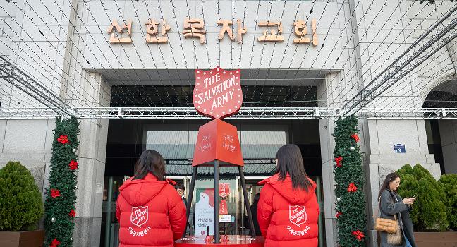 구세군이 교회를 방문하여 사랑의 달 캠페인을 진행합니다.